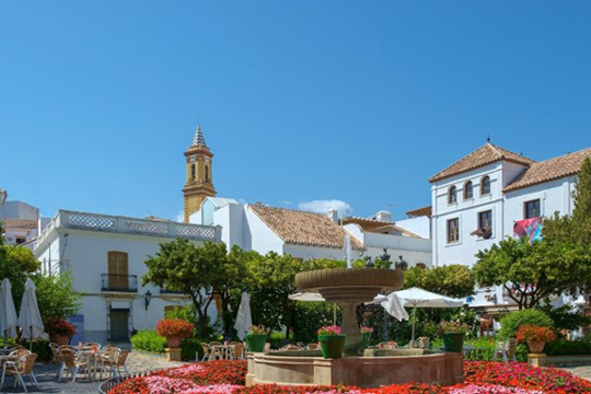 The charming town of Estepona, with its cobblestone streets and lush, tree-filled plazas, is known